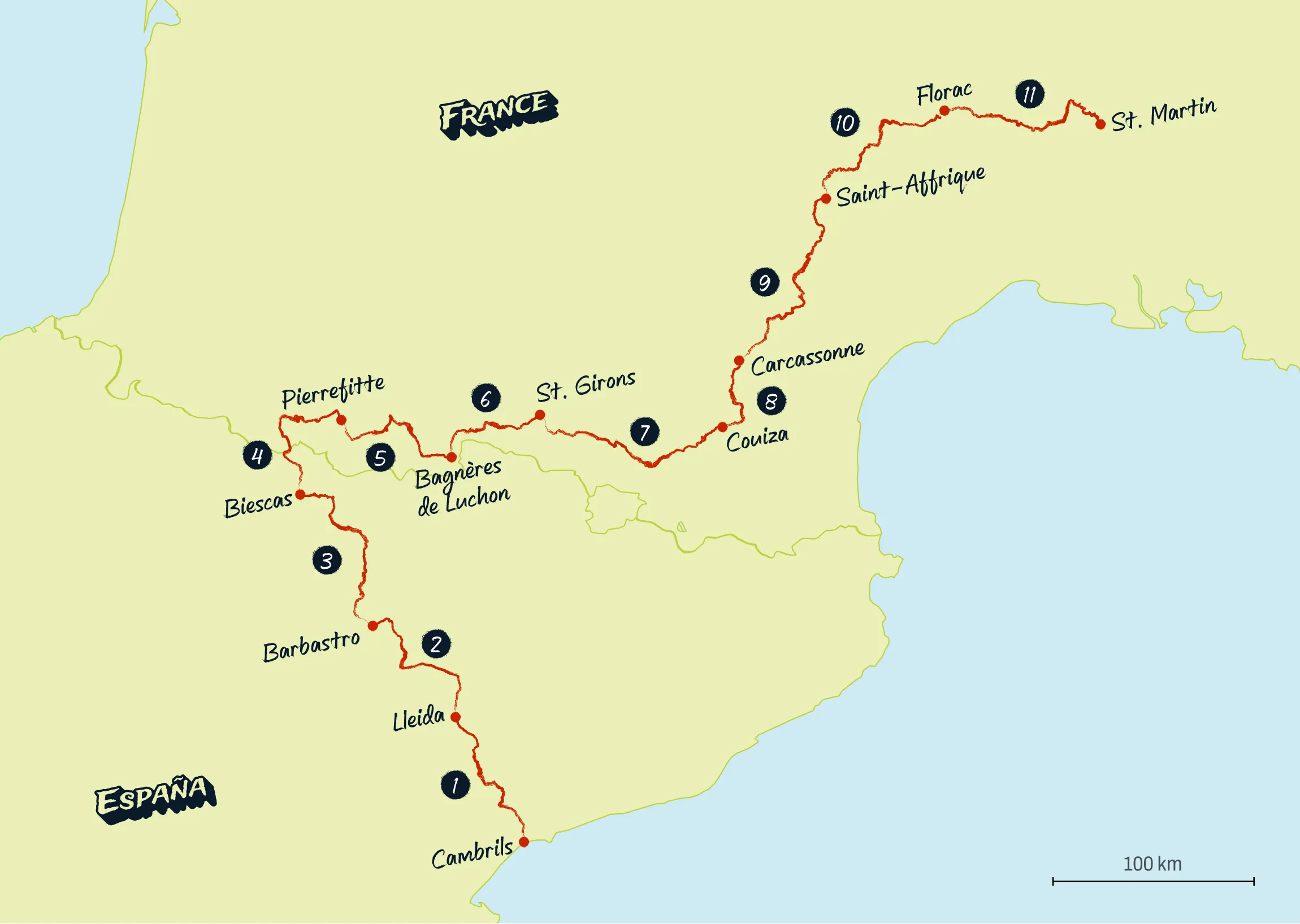 Tu ne franchiras certes pas la ligne d'arrivée sur les Champs-Élysées vêtu du maillot jaune, mais ton vélo de course te permettra de gravir les cols qui ont fait la légende du Tour de France. Des noms tels que Col du Tourmalet, Peyresourde ou Aspin sont synonymes d'histoires faites de triomphes et de souffrances. Lors du Tour de Pyrénées, tu suivras cette légende depuis la côte méditerranéenne jusqu'au cœur de l'Ardèche et tu vivras les Pyrénées avec une intensité que seuls les professionnels ont l'habitude de connaître.